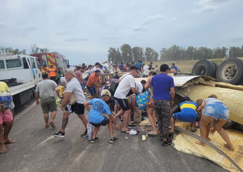 Al lugar acudieron efectivos de la Policía Bonaerense, Gendarmería Nacional, Bomberos Voluntarios y personal de Corredores Viales con grúas para asistir en el operativo. Sin embargo, minutos después del siniestro, comenzaron a llegar curiosos que se percataron de que la carga del camión había quedado dispersa a lo largo de la ruta, con el objetivo de apropiársela.