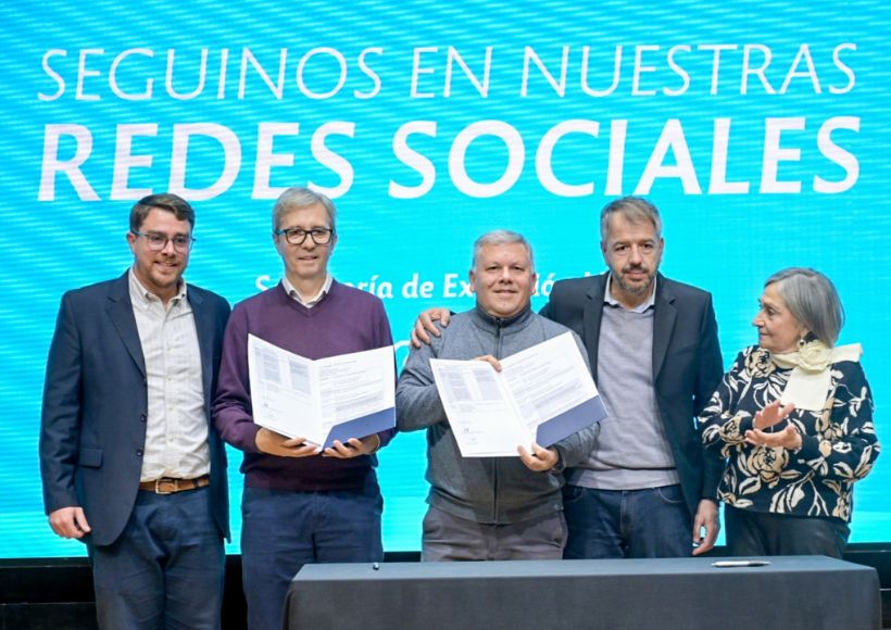 El intendente de Arroyito, Gustavo Benedetti junto al rector de la UNC, Jhon Boretto, y el secretario de Extensión Universitaria, Conrado Storani, firmaron una carta de compromiso con esta Casa de Altos Estudios, refrendando así el compromiso y la colaboración para la implementación del presupuesto participativo.