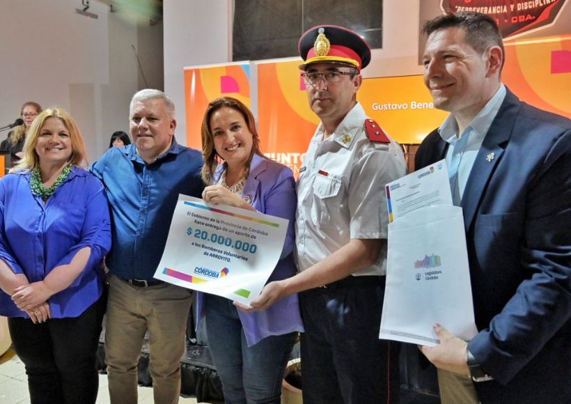 El pasado sábado, el intendente Gustavo Benedetti, junto a la vicegobernadora Myrian Prunotto, realizaron la entrega oficial de 20 millones de pesos a los Bomberos Voluntarios de Arroyito.