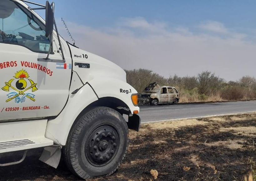 Un automóvil se incendió este viernes mientras circulaba por la Ruta Provincial 17 entre Balnearia y Altos de Chipión, a la altura de Jerónimo Cortés.