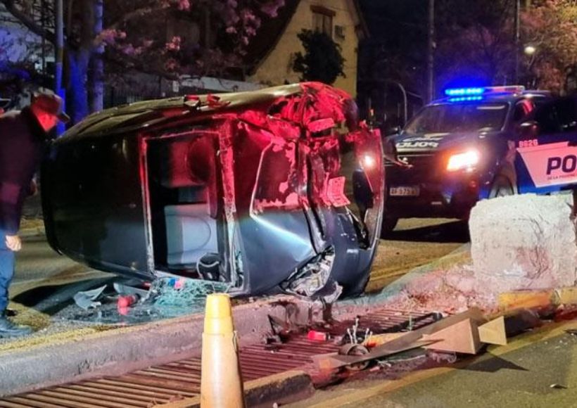 De acuerdo a lo que trascendió, perdió el control, se subió al cantero, chocó contra una escultura y tumbó. El hombre que manejaba el Honda Fit debió ser rescatado por personal de Bomberos luego de que cortaran el vidrio del parabrisas.