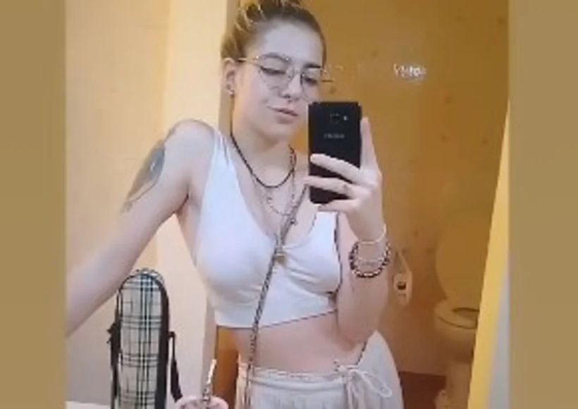 Vestía un pantalón holgado blanca, una musculosa blanca y tenía una mochila negra.