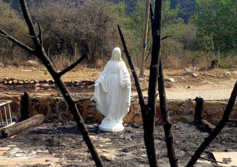 Una virgen quedó intacta tras un arrasador incendio que azotan a la provincia de Córdoba. Todo ocurrió en el camino que une Charbonier con Ongamira, donde se encuentra el Centro Mariano del Espíritu Santo.