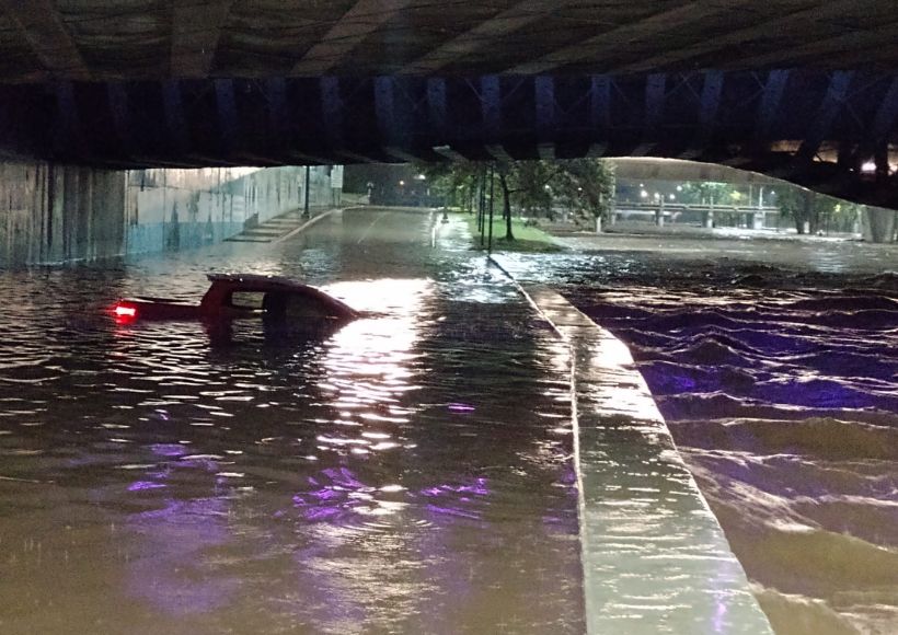 El conductor iba por Av. Costanera sur y se encontró con el cauce crecido a la altura del Puente del Bicentenario. Inmediatamente el vehículo quedó varado, con agua casi hasta el techo.