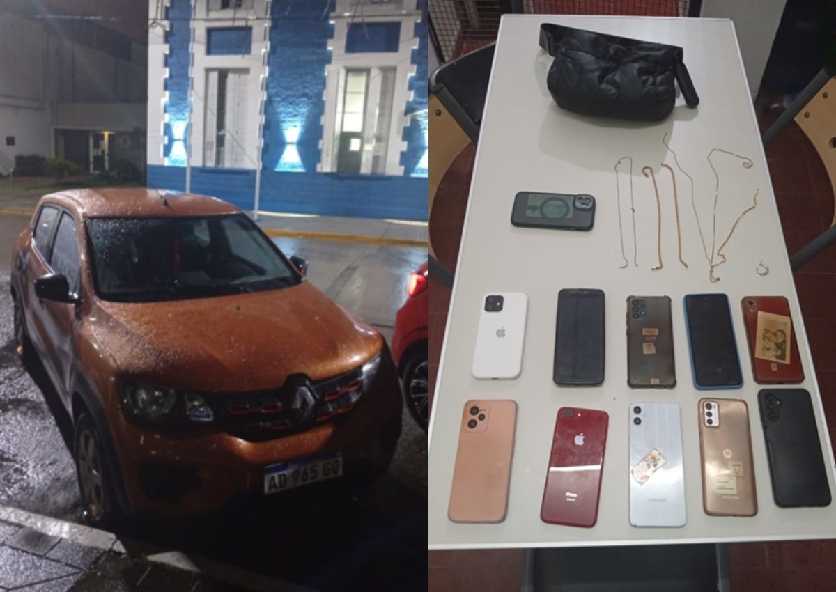 Durante el procedimiento se recuperaron varios celulares sustraídos y alhajas de fantasía, que estaban en poder de los detenidos. También se secuestró el automóvil en el que se trasladaban.
