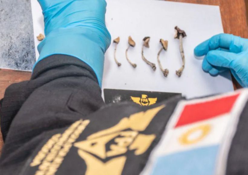 En el domicilio fue aprehendido el otro joven (25) y tras un registro del lugar -con la asistencia de perros K9 detectores de drogas de sintéticas- se secuestraron 105 pastillas de éxtasis (haciendo un total de 107), 19 unidades de hongos alucinógenos y una cantidad menor de dosis de marihuana, además de otros elementos relacionados a la producción, fraccionamiento y comercialización de drogas, como invernadero, lámpara y cápsulas de gelatina, para medicamentos, vacías.