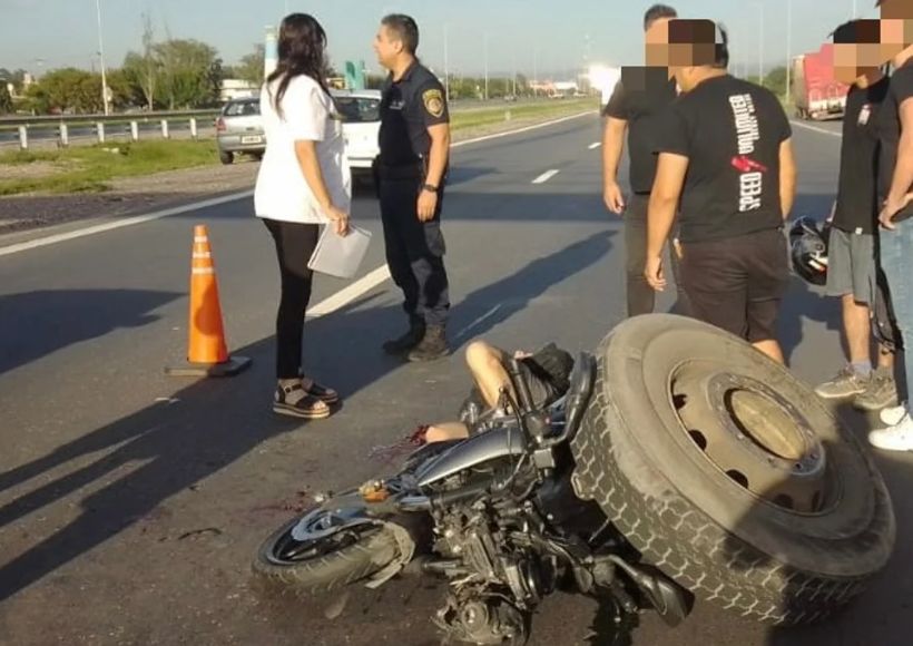 En un hecho que pudo haber resultado con peores consecuencias, un camión Volkswagen de la empresa Transportes del Sur que llevaba gaseosas, perdió un neumático que impactó en dos personas que circulaban en moto y otro vehículo que circulaban por Circunvalación, ocasionando politraumatismos a los motociclistas.