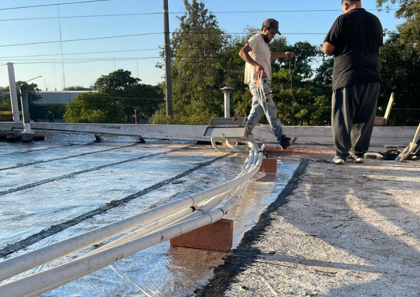 Los trabajos incluyeron la reparación de 70 metros cuadrados de techo afectado por filtraciones y deterioro estructural. Además, se cambió una cañería de agua que pasaba sobre la losa, instalándola embutida dentro de la nueva estructura para evitar daños por exposición. También se protegió la cañería eléctrica, con el objetivo de prolongar su vida útil.