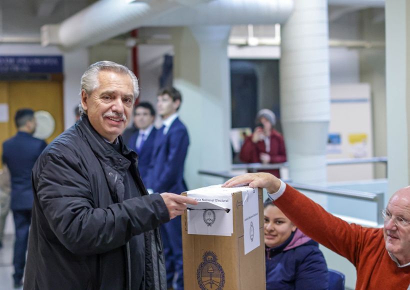 El presidente argentino, Alberto Fernández, votó poca antes de las 10 en la sede de la Universidad Católica Argentina (UCA), en el barrio porteño de Puerto Madero.