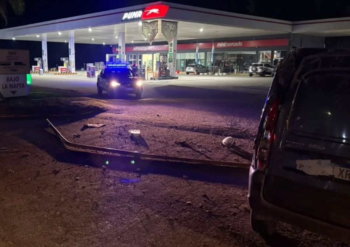 En el marco de una madrugada agitada por los festejos del Día del Amigo, un llamativo accidente se registró en Villa del Rosario: un utilitario Renault Kangoo perdió el control e impactó de lleno contra la cartelería de la estación de servicio PUMA, ubicada sobre Ruta 13.