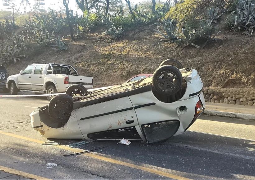 Un automóvil Fiat Palio, en el que circulaban tres jóvenes, terminó dado vuelta sobre el asfalto, luego de embestir varios autos que se encontraban estacionados y chocar en Avenida Poeta Lugones de la ciudad de Córdoba.