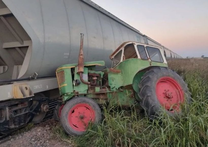 El tractor marca Deutz era conducido por un hombre de 55 años. Tras el impacto, el rodado fue arrastrado y quedó su parte derecha debajo de uno de los vagones de la formación que casi descarrila.