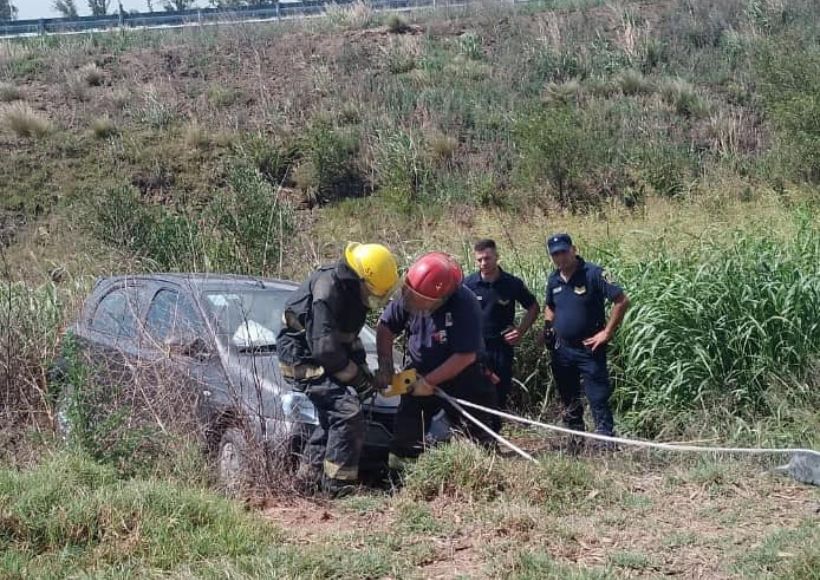 Una dotación de Bomberos Voluntarios de Río Primero se hizo presente en el lugar del siniestro, para colocar el vehículo -que había quedado en la banquina- sobre la carpeta asfáltica.