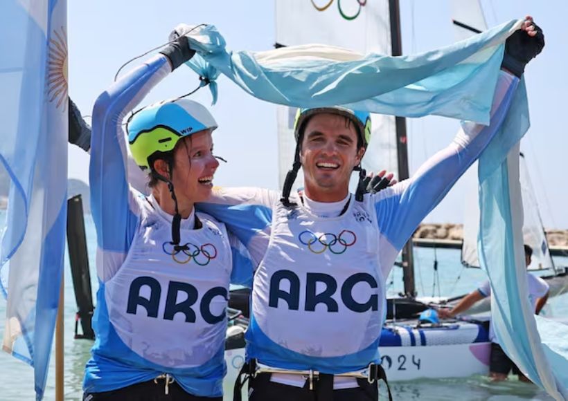 Los regatistas argentinos Mateo Majdalani y Eugenia Bosco lograron la medalla de plata este jueves en la Medal Race en Nacra 17, que ayer había sido suspendida debido a la falta de viento en las costas marsellesas.