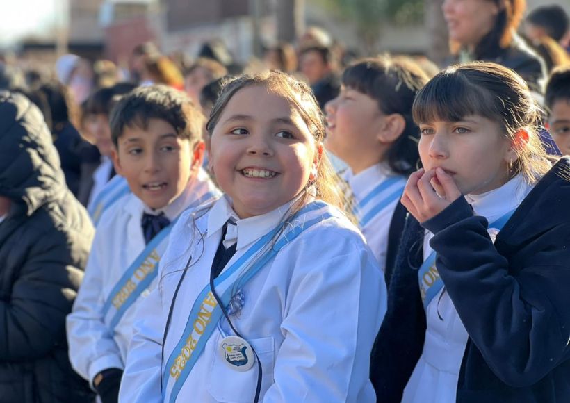 La ceremonia, organizada por el municipio, contó con la participación de autoridades locales, instituciones educativas, fuerzas armadas y vecinos. Uno de los momentos más destacados fue la tradicional Promesa de Lealtad a la Bandera, protagonizada por alumnos y alumnas de cuarto grado de las escuelas Maestro Domingo Nogal, Margarita Vázquez Ludueña de Lazo y 25 de Mayo. Además, se felicitó especialmente a los estudiantes del Instituto Parroquial Monte Cristo, quienes realizaron su promesa en el Monumento a la Bandera, en la ciudad de Rosario.