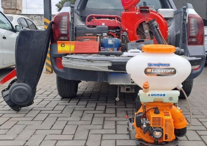 En los procedimientos, que culminaron con la detención de los sujetos de 28 y 48 años, se incautaron varios vehículos que registran pedidos judiciales, un generador, una amoladora, una fumigadora, autopartes y herramientas, entre otros elementos.