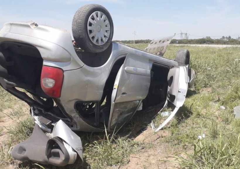 El primer incidente ocurrió en el ingreso a la localidad, cuando un auto Ford Focus mordió la banquina, dio varios tumbos y quedó dado vuelta en la banquina de la mano contraria de la ruta.