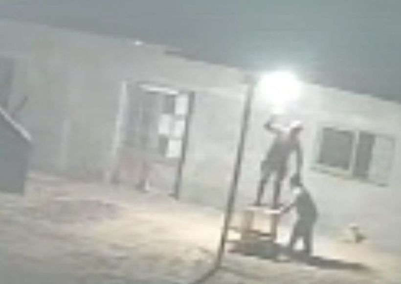 En las cámaras de la institución se ve a dos hombres, que antes de cometer su propósito desconectan una luz para no ser tomado por la camara al dejar el espacio en la oscuridad.