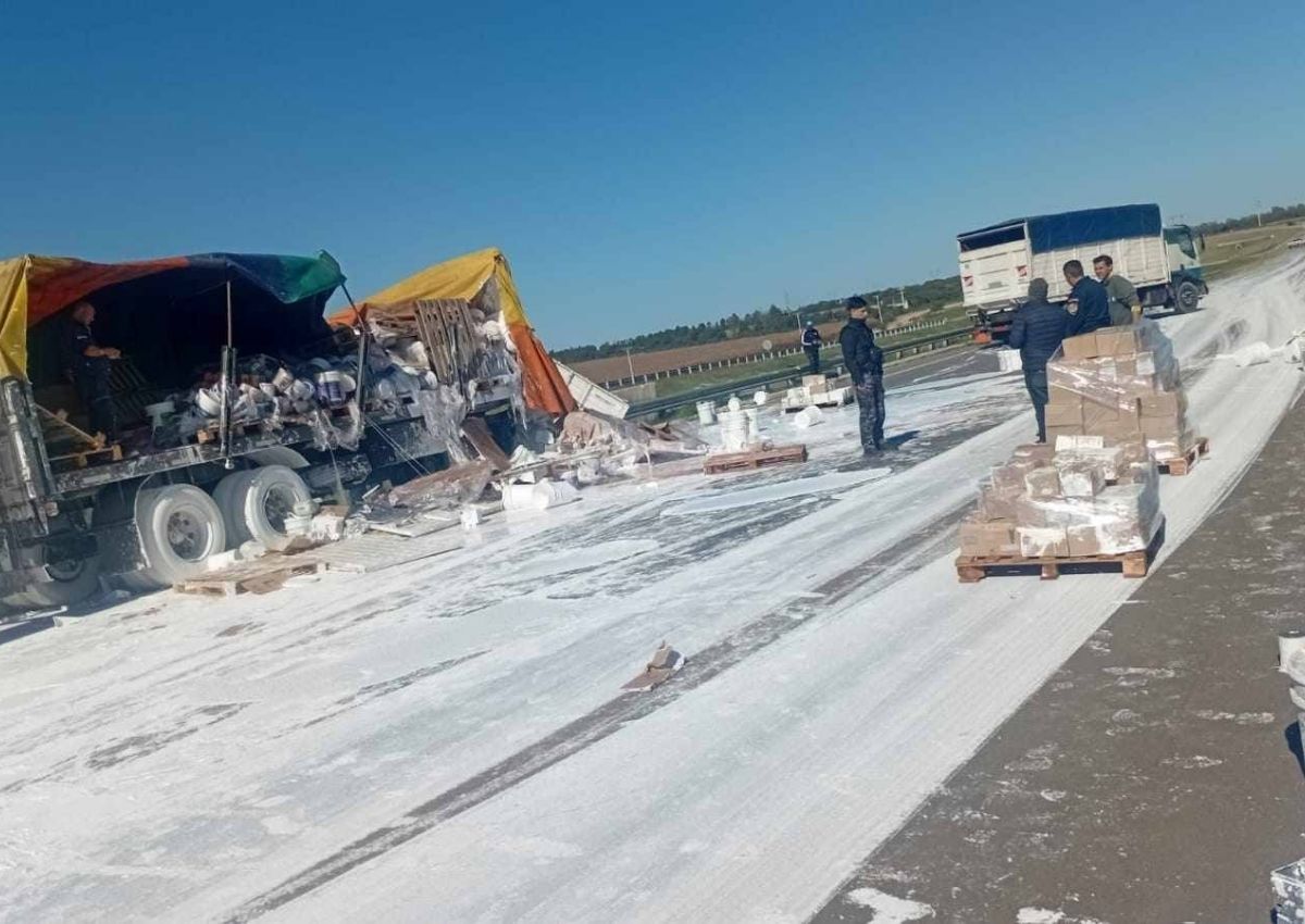 Como consecuencia del incidente, toda la calzada quedó cubierta por el material, lo que obligó a las autoridades policiales a desviar el tránsito hasta normalizar la circulación.