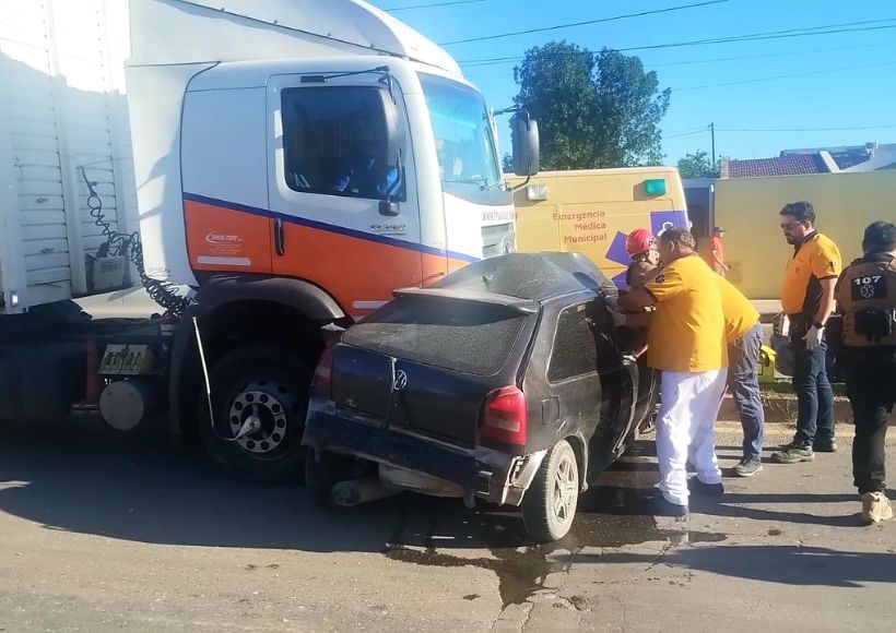 Todo sucedió en calle General Savio al 4949 de barrio San Felipe. Por causas que se investigan, un camión marca Volkswagen chocó y arrastró varios metros a un VW Gol.