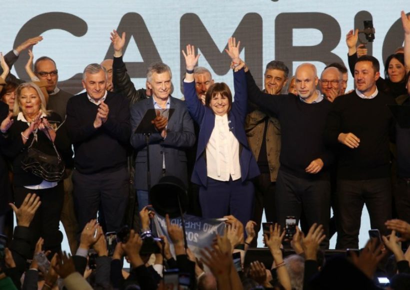 En otro pasaje de su discurso triunfal, la titular del PRO se mostró agradecida por la participación de la fórmula compuesta por Horacio Rodríguez Larreta y Gerardo Morales, y los invitó a subir al escenario mientras la militancia coreaban «hay que saltar, el kirchnerismo no existe más».