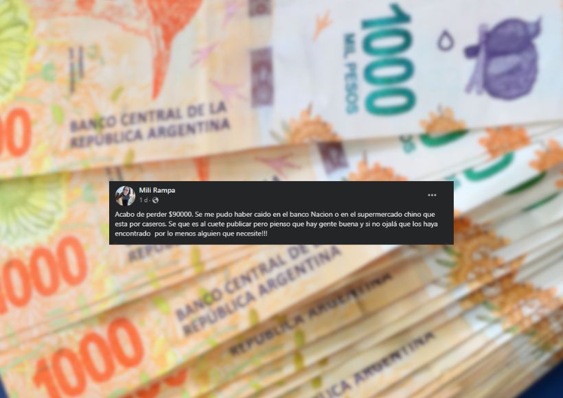 Días atrás una joven perdió 90 mil pesos en efectivo en la calle. Tras su infortunio, decidió apelar a la solidaridad de la gente y publicó su pérdida en un grupo de compra y venta en Facebook.