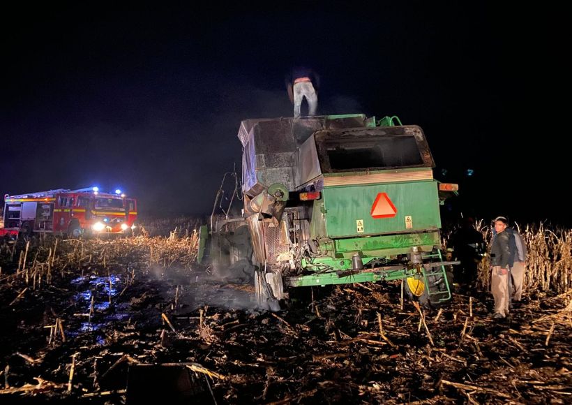 Durante la tarde de este martes, una máquina cosechadora se prendió fuego en un campo cercano a la localidad de Piquillín.