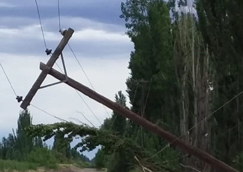 En ese sector hubo voladuras de techos en algunos galpones, además hay postes caídos y cables cortados por toda la zona.