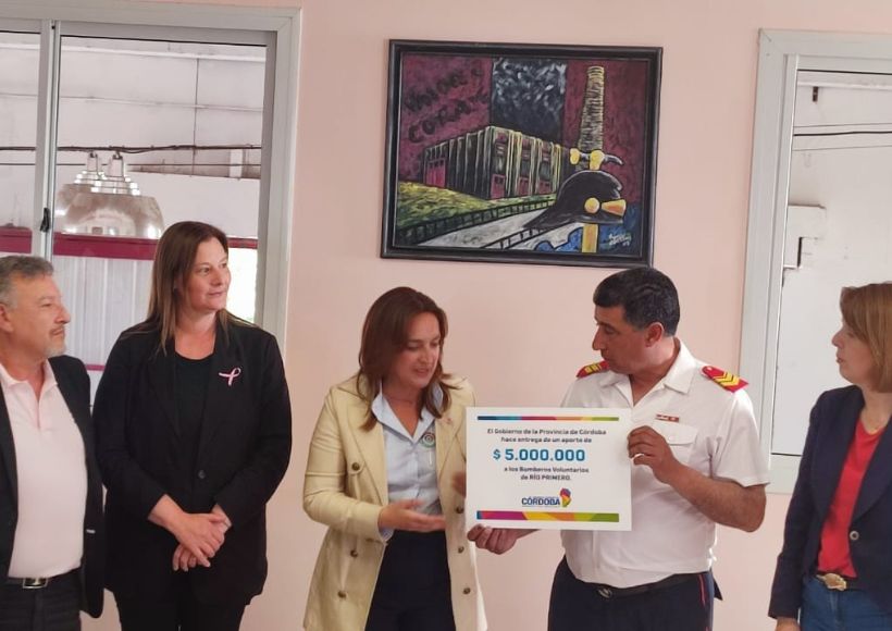 La vicegobernadora Myrian Prunotto visitó este miércoles por la tarde la ciudad de Río Primero, donde entregó un aporte económico de 5 millones de pesos a los Bomberos Voluntarios locales.