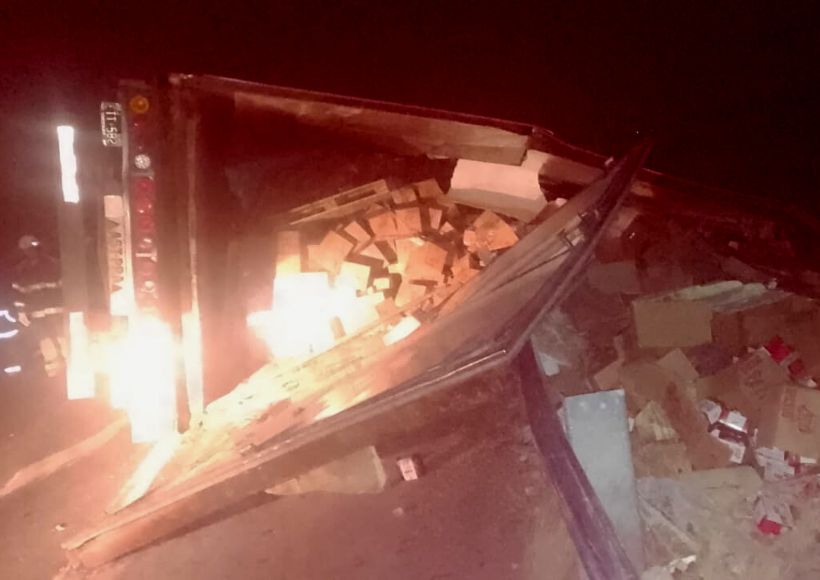 Según testigos, algunas personas se acercaron con intenciones de llevarse algo de la carga que quedó desparramada por el asfalto y la banquina.