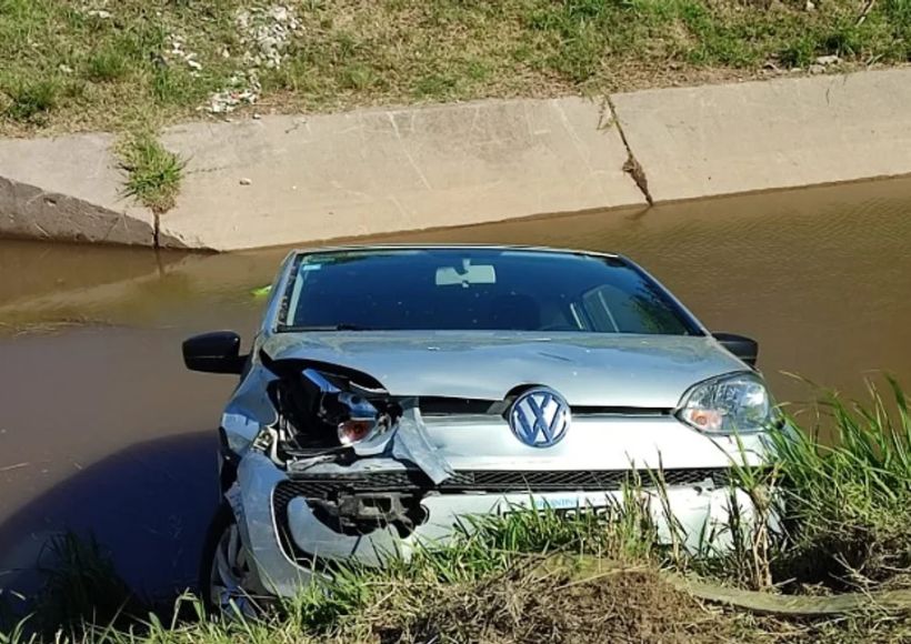 Ocurrió en la mañana de este martes cerca del puente de Amadeo Sabattini. El VW Up perdió el control, arrancó el guardarrail y terminó en el agua.
