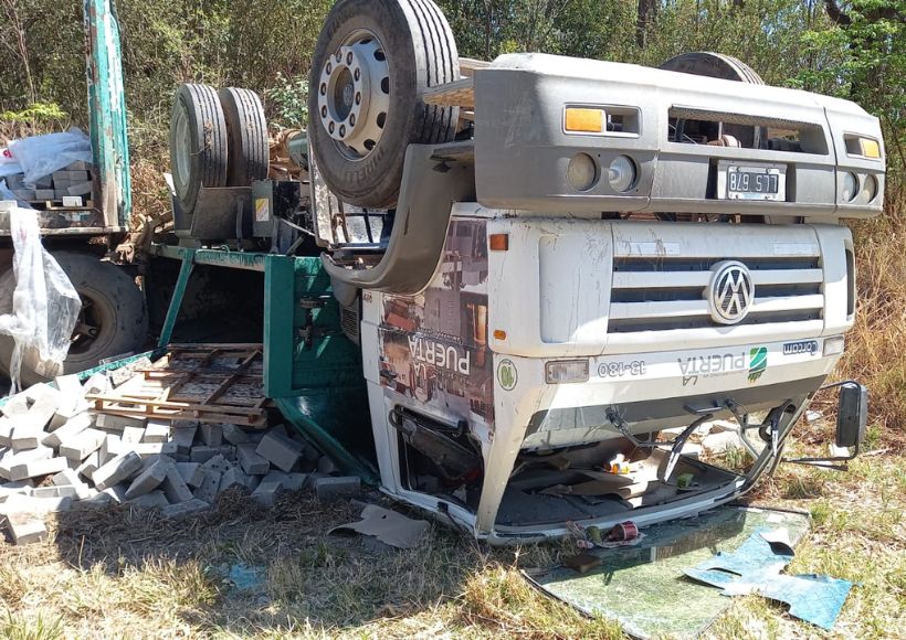 Pasado el mediodía de este viernes, un camión con acoplado cargado con adoquines se despistó y quedó volcado sobre la banquina de la Ruta Provincial Nº10, a tres kilómetros de Villa Santa Rosa.