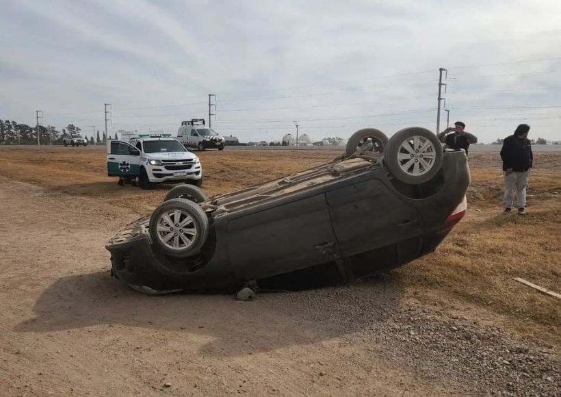 Al mediodía de este jueves, se produjo un siniestro vial sobre la Autovía 19, en el cual un automóvil terminó volcado sobre la banquina.