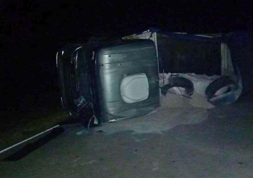Un camión con acoplado que transportaba bolsones de calcio volcó en la madrugada de este lunes en el kilómetro 117 de la Ruta Provincial N°17, en el tramo que une las localidades de Obispo Trejo y Chalacea.