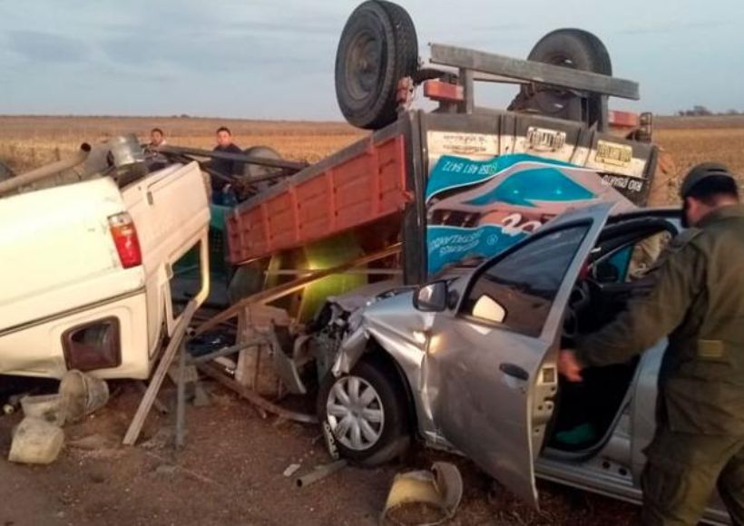 En el choque múltiple cuatro personas resultaron heridas. Los vehículos quedaron completamente destruidos. Parte de la ruta se cubrió de cereal.