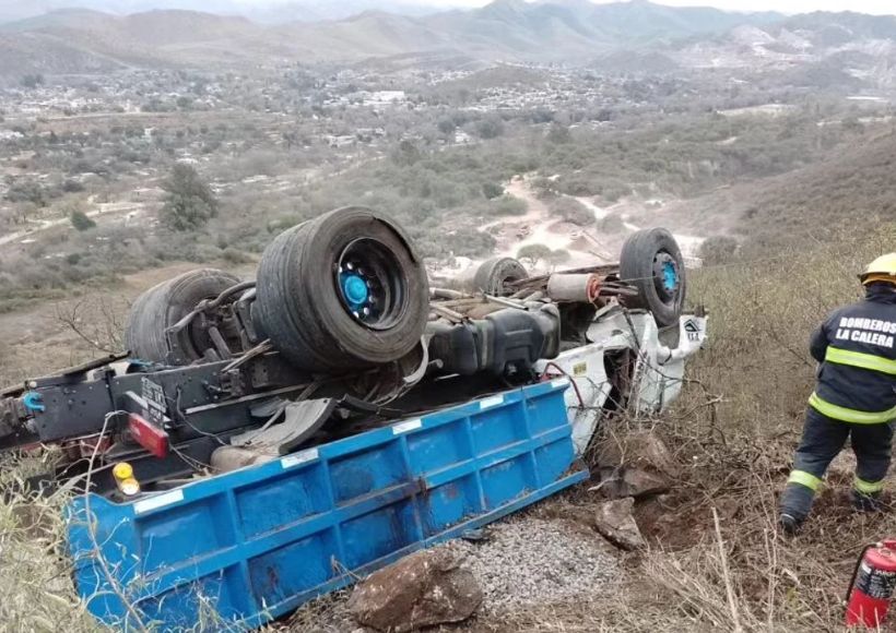 Un verdaderos susto se vivió en el Country La Deseada, en La Calera, cuando un camión cargado con materiales para construcción cayó al vacío por un barranco del mismo predio del barrio.