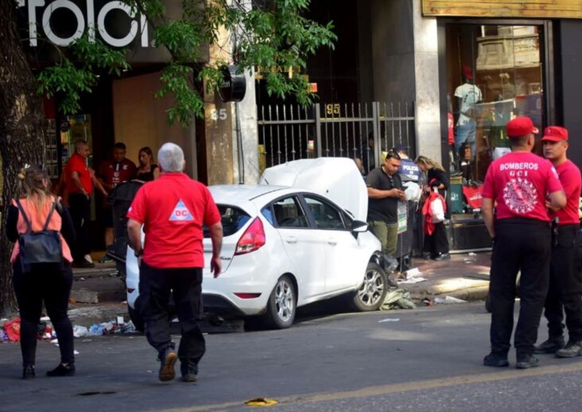 Un impresionante accidente de tránsito sucedió alrededor de las 16 de este lunes en la esquina de General Paz y 9 de Julio de la ciudad de Córdoba, cuando el conductor de un Ford Fiesta blanco chocó contra una motocicleta y luego atropelló a varios peatones que se encontraban sobre la vereda.