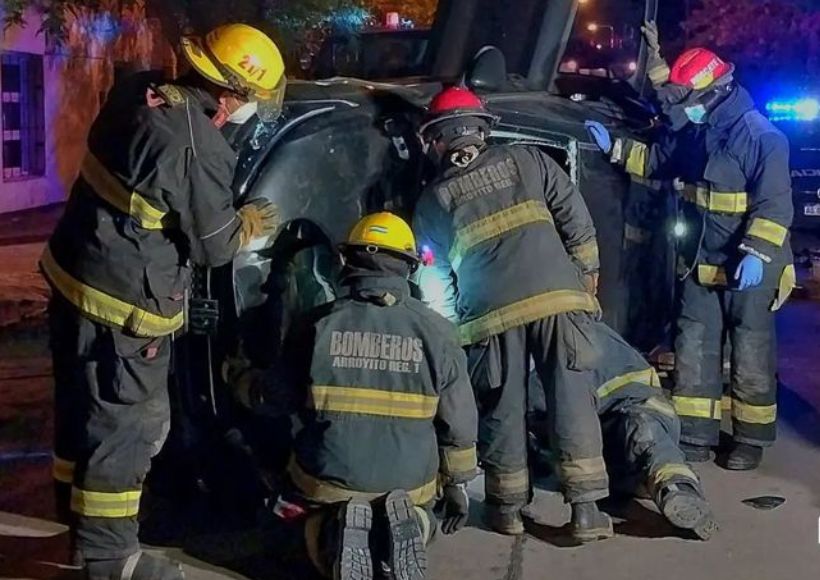 El siniestro vial se produjo en la zona urbana de la ciudad de Arroyito, en calle 9 de Julio al 600, a donde debieron acudir integrantes de los Bomberos Voluntarios para socorrer al conductor que había quedado atrapado en el rodado.