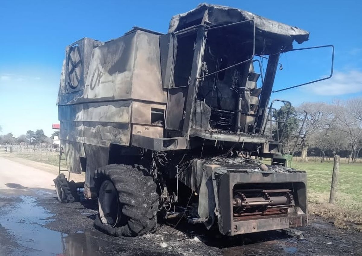 Durante la tarde de este jueves, un incendio afectó a una cosechadora en un camino rural ubicado a 4 kilómetros al norte de la ciudad de Arroyito, provocando pérdidas totales en el vehículo.