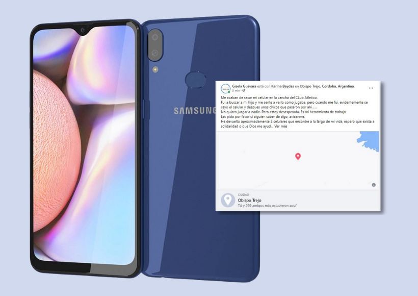 A Gisela, que además ofrece una recompensa de $10.000 para recuperar su celular Samsung A10 S, la podes encontrar en Instagram como @gigilocu y en Facebook como @gisela.guevara.37