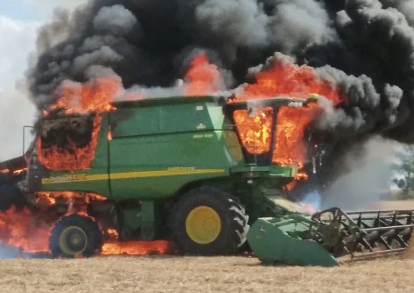 Durante la tarde de este miércoles Bomberos Voluntarios de Villa Santa Rosa debieron acudir a la zona rural de Punta del Agua, en donde se incendió una máquina cosechadora.